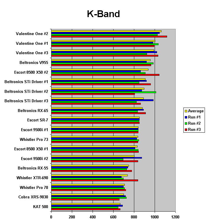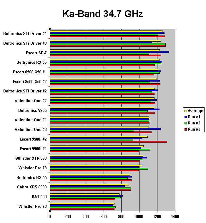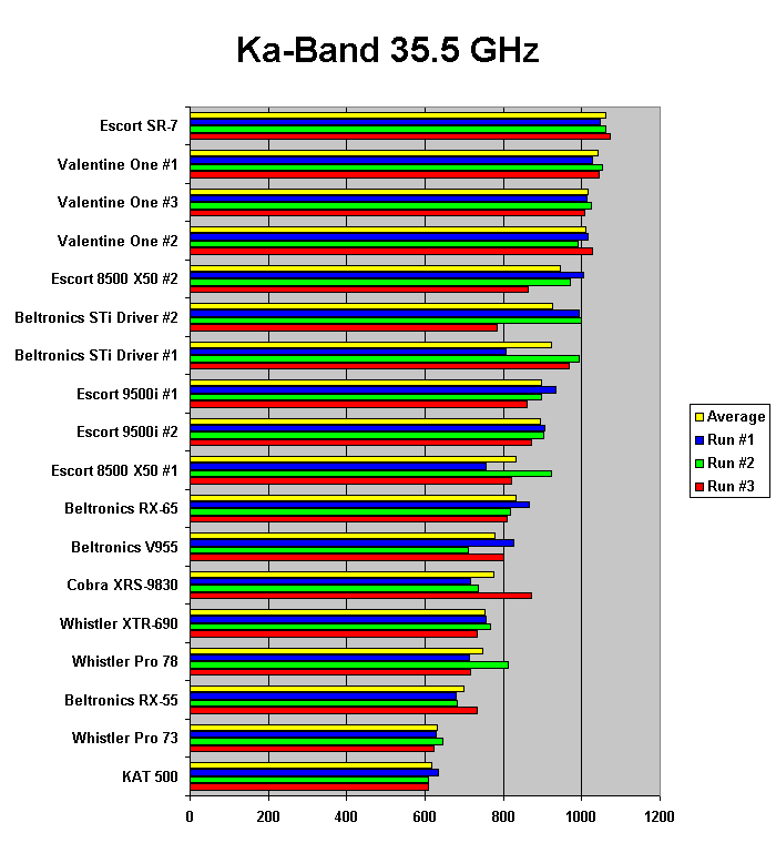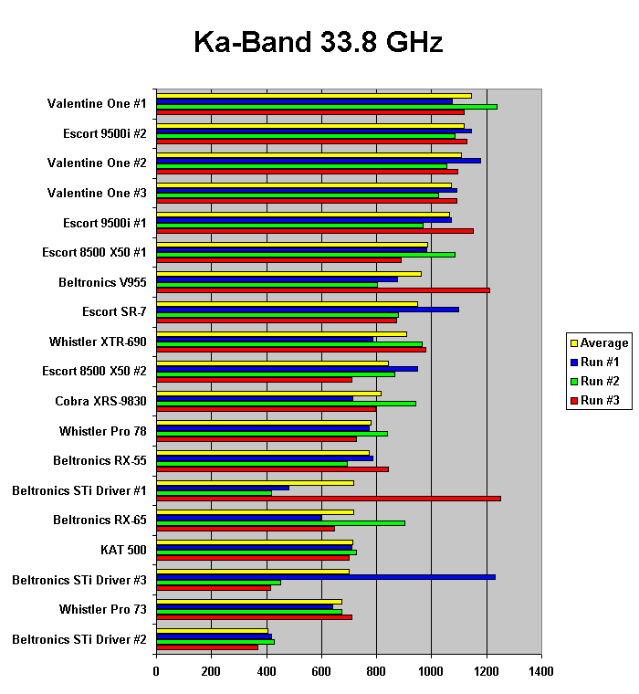 ![]() We had three full days to test radar detectors, so we made the most of it. We tested a variety of detectors against 35.5 GHz Ka, 34.7 GHz Ka, 33.8 GHz Ka, K-Band, X-Band, Ku Band, POP, and Spectre III.
