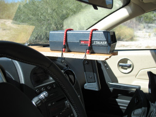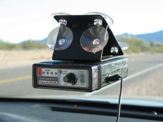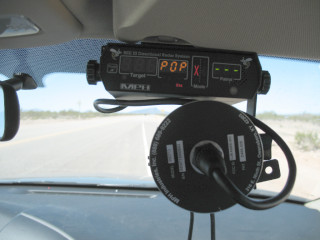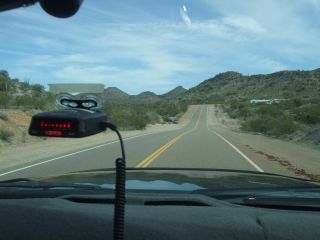 The first area we considered using for radar detector testing was plagued by a mysterious Ka signal for the first two days of testing, causing alerts and making it unusable for testing radar detectors (Click here to find out what it was!). But luckily, we had scouted the area thoroughly before the test, and knew of another location a number of miles up the road that would make things very difficult for the detectors (to say the least!). Better yet, there was no radar interference at this location. ![]() We used the terrain to make things difficult for the detectors, in a similar manner to the way police might. The radar vehicle was stationed at the bottom of a steep hill on one side of a "wash" which fills with water during monsoon season. One of the police officers present verified that this is a location where he would feel comfortable working radar. This course pushed things to the extreme worst-case. If there was a real speed trap at this location, one would have to be very quick on the brakes, even with a high-end radar detector. This test course was purposely chosen to be difficult: it was not chosen to showcase the "true range capabilities" of the detectors. It has been demonstrated that most high-end detectors are capable of many miles of range on a long, straight, flat test course. So remember: small 50-foot differences between detectors tested on our "extreme" course might easily equate to hundreds or even thousands of feet on a much longer, flatter course. ![]()